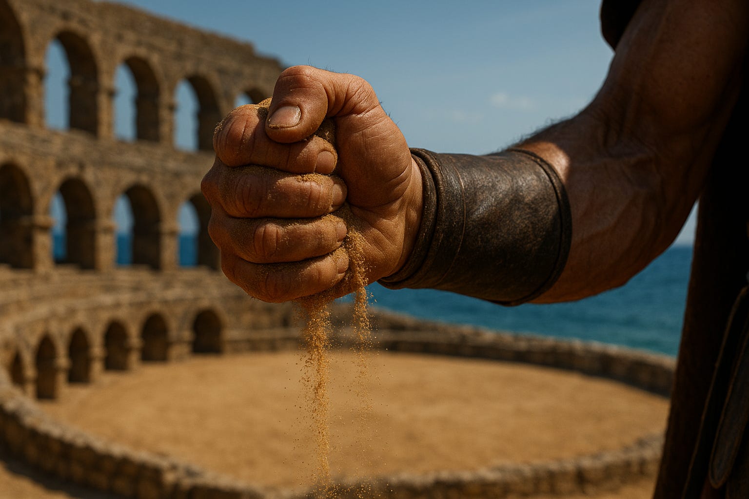 Cuando reestreno la pisada en la arena de la playa, me suele gustar agacharme para recoger, como el que siega, un puñado de arena, dejando que los finos granos discurran entre mis dedos mientras lo desmenuzo, como hacía Máximo Décimo Meridio en aquel coliseo cinematográfico, tanteando el terreno en el que iba a batirse en duelo. Y entonces miro al mar - o a la montaña, cuando toca - y en su profundidad hallo siempre algo de trascendencia, de balance, de aspiración. Y coqueteo con la idea, también de esa película, de que lo que hacemos en esta vida tiene algún eco en la eternidad. Aunque todos acabemos disolviéndonos como granos de arena dispersos en el aire.