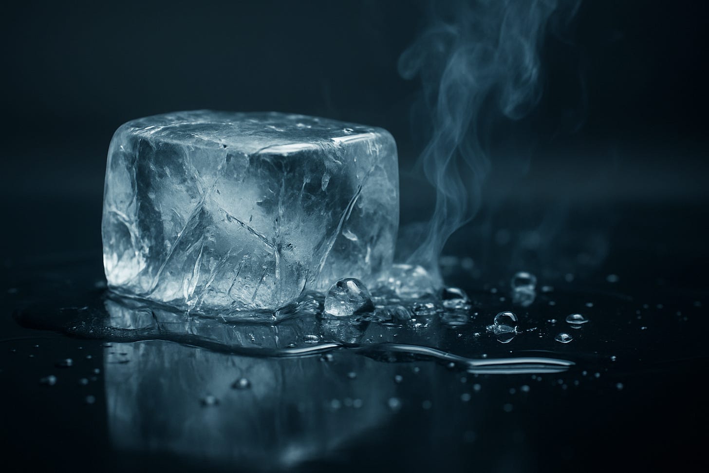 Observa un hielo que se derrite lentamente. Del sólido impertérrito y seco, a la progresiva fusión. Al comienzo procede de forma muy lenta, casi imperceptible. De pronto, comienza a manifestarse un temblor. Y, súbitamente, el proceso se acelera. El bloque de hielo que parecía resistir al calor oculto se quiebra, y un crujido lo fractura. Y la grieta que lo resquebraja crece, hasta que comienzan a desprenderse trozos que flotan en ese nuevo océano que va asomando bajo sus pies, como naves botadas a la deriva. Los pedazos se desplazan, flotan y se tocan ocasionalmente entre sí. Siguen su camino descendente de desestructuración, aclimatándose a la nueva realidad, domesticándose hasta fundirse en un líquido, puro, cristalino, que va desmenuzándolos hasta que la última esquirla sólida desaparece engullida por el fluido.
