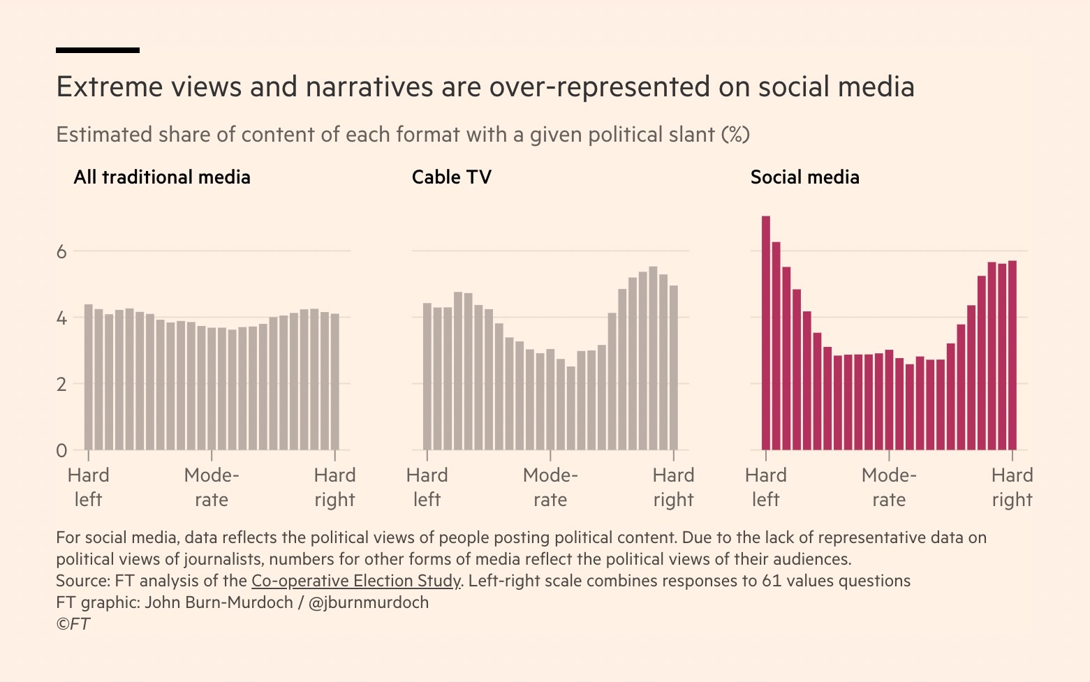 Las opiniones extremas aumentan el intercambio. Van Bavel y su laboratorio han descubierto que la dinámica de la psicología grupal de Internet a menudo amplifica las opiniones más extremas y minimiza las moderadas de una forma muy concentrada2. Estos usuarios a menudo aumentan su audiencia expresando las opiniones más extremas y "seleccionando" las opiniones más escandalosas del otro lado. Dada la parte desproporcionada de la atención total en línea que captan los bocazas más extremistas, el "centro moderado" de los usuarios generalmente está subrepresentado en Internet. Después del asesinato de Kirk, por ejemplo, los partidarios de ambos lados parecían estar muy familiarizados con las publicaciones más escabrosas de sus enemigos políticos, pero no hubo muchas cuentas que se volvieran virales al capturar capturas de pantalla de opiniones típicamente tranquilas de personas comunes que se comportan éticamente y expresan simple remordimiento, condolencia o preocupación. Así lo corroboran otros estudios: